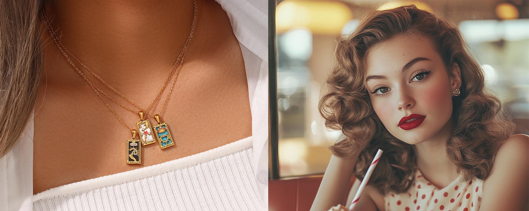 Necklace pendant Tarot card Strength+Lover+Sun+Stars+Moon
